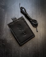 *El Scappy is a small leather slip designed for pocket carry. The top loop allows you to add your favorite cordage and make your own customized necklace. Holds popular fine silver inserts or imagery. *Carry chiclet razors and other sharp tools at your own risk of damaging the leather or plastic window.