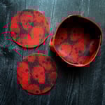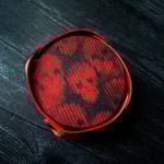 This small leather tray features textured/pebbled Italian Leather with haunting skull print. Includes free pair of matching coasters. This small tray is perfect for the home or office, and can be used for keys, coins, and other small items.